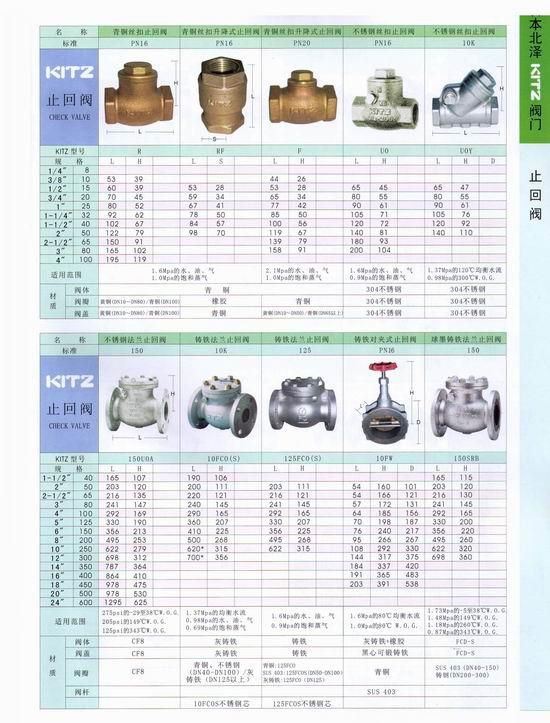 進口日本北澤KITZ止回閥:止回閥又稱單向閥或逆止閥,其作用是防止管路中的介質倒流。水泵吸水關的底閥也屬于止回閥類。啟閉件靠介質流動和力量自行開啟或關閉,以防止介質倒流的閥門叫止回閥。止回閥屬于自動閥類,主要用于介質單向流動的管道上,只允許介質向一個方向流動,以防止發生事故。日本進口北澤KITZ止回閥、日本北澤KITZ銅止回閥、日本北澤KITZ法蘭止回閥、日本北澤KITZ鑄鐵止回閥、日本北澤KITZ不銹鋼止回閥。