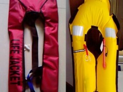 背心式氣脹救生衣:背心樣式,前襟和下擺均為可調式插口,可松可緊。氣脹前穿著輕便;氣脹后氣囊將上身緊緊裹住,合理的氣室分布可將人體自動翻轉仰面傾斜浮于水面,頭部高于水面120毫米。