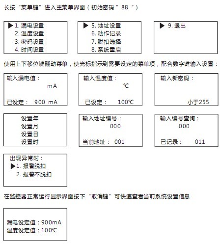 □ 探測器剩余電流報警值可以在100~999mA中任意設定