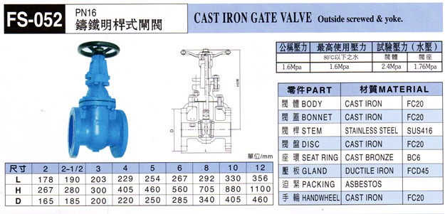 設(shè)計制造:按GB/T12234-89的劃定 結(jié)構(gòu)長度:按GB/T12221-89的劃定 法蘭面尺寸:按JB79GB/T9112-9131的劃定 檢查與試驗:安JB/T9092-99GB/T13927-92的劃定 傳動方式:手動、電動、齒輪。 臺灣富山鑄鐵明桿式閘閥合用于公稱壓力PN1.6~16.0MPa,工作溫度≤-29℃~550℃的石油、化工、水力、火力電站各種系統(tǒng)的管路上,堵截或接通管路介質(zhì)。 ![]() 臺灣富山閥門是一家世界知名的閥門生產(chǎn)廠家;富山擁有自己的執(zhí)行機(jī)構(gòu)生產(chǎn)線,可以為你提供應(yīng)用于苛刻工況的自動化、定制的閥門成套設(shè)備配套使用。 |