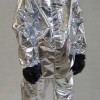 (heat-insulation suit)是為消防隊員及其它高溫場所作業人員提供熱保護的服裝,它由阻燃纖維織物與真空鍍鋁膜的復合材料制作而成,不含石棉,具有比重輕、強度高、阻燃、耐高溫、抗熱輻射、防水、耐磨、耐折、對人體無害等特優點,能有效地保障消防隊員、高溫場所作業人員接近熱源而不被酷熱、火焰、蒸氣灼傷。該產品符合GA88《消防隔熱服性能要求及試驗方法》、SOLAS(74)1981年修正案的要求,適合廣大陸地、船舶上的消防隊員在救滅火災中使用,也可作為廠礦、研究室等各類高溫作業場所的作業人員的勞動保護用品。在滅火作業時能有效地保障消防員的人身安全。