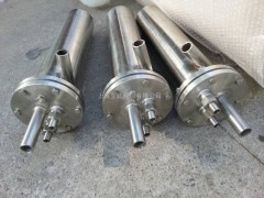 該冷卻器由內螺旋管、外螺旋管組成。共同安裝在一個筒體內。外螺旋管在呈螺旋運行的冷卻水中進行熱交換;內螺旋管在呈渦流運動的冷卻水中進行熱交換,兩種冷卻水巧妙地匹配在一只冷卻器中進行流動。