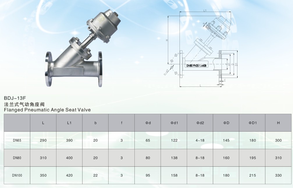 蓋米型 法蘭氣動角座閥 全不銹鋼法蘭氣動角座閥