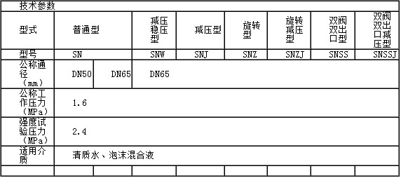 各種型號(hào)的室內(nèi)消火具體技術(shù)參數(shù)如下表: