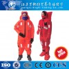 符合SOLAS公約、IMO規范的要求,具有水密、浮力和自然保溫功能,配有哨笛和救生衣燈,不需加穿救生衣。它將衣褲連成一起,保護除臉以外的整個身體,適用于各航行船舶、石油平臺和其它海洋作業工程。該產品經中國船級社(或其他國家船級社等相關資質單位)型式認可和檢驗 。