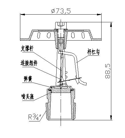 焊接式易熔元件噴頭的釋放機構中的感溫元件由兩個等長的連接件通過易熔元件焊接層相連,當達到動作溫度時,焊點熔斷,連接件脫離,啟動噴頭灑水。通常情況下,噴頭入口施加水壓產生的力與噴頭裝配載荷施加在噴頭體上的力對熱敏感元件都會產生很大的機械壓力,焊接式易熔元件噴頭采用杠桿原理,減少作用在易熔連接件上的力。這種結構的噴頭,機械壓力被分解為支柱上的作用力、易熔連接件的機械力和易熔連接部件之間焊劑的負荷,這樣使焊劑承受的力較低,可避免達到動作溫度所需的焊劑的組分在高應力下造成冷流。