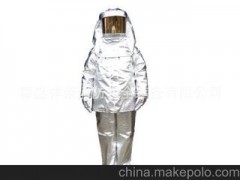 B1PU避火隔熱服,巴固避火隔熱服采用纖維織物與鍍鋁薄膜的復合材料制作,服裝包括上衣、褲子、手套、頭罩和蓋腳,不含石棉,具有比重輕、強度高、阻燃、耐高溫、抗熱輻射、耐磨、耐折以及對人體無毒無害等優點,能有效地保障消防隊員和高溫作業人員不被烈焰、高溫灼傷。