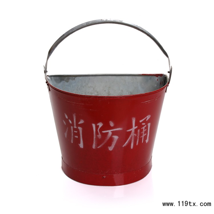 消防桶:供撲救火災時,用以盛裝黃沙,撲滅油脂、鎂粉等燃燒物。呈扇形,可以在撲救火災時,有效的散開桶內黃沙,增大撲滅過火面積,達到救火的目的。
