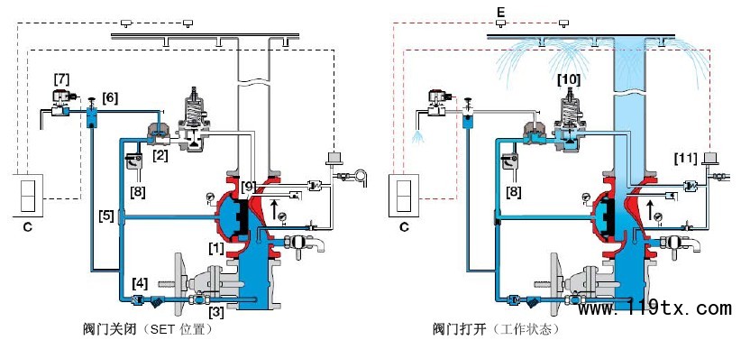BERMAD(伯爾梅特)組合調壓式雨淋閥適用于需局部控制噴淋流量的大面積開式噴淋系統。雨淋閥感應到電、液壓、氣壓信號或電/氣信號時打開。閥門開啟后,雨淋閥將較高的系統壓力降低為較低的預設壓力來保證局部和整體系統間的需求流量。