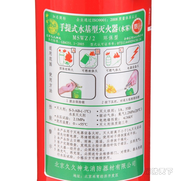 產(chǎn)品型號:MSWZ/2滅火劑:S-3-AB-(-1℃)滅火級別:1A、55B