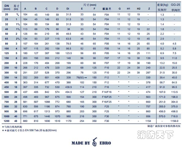 ZO11-A型蝶閥與E65、E110、E110、E160、E160、E210、E210電動執行機構配套,輸入控制信號(4~20mADC或1~5VDC)及單相電源即可控制運轉,具有功能強、體積小、輕便宜人,性能可靠、配套簡單、流通能力大,特別是適合于介質是粘稠、含顆粒、纖維性質的場合。德國EBRO電動對夾式蝶