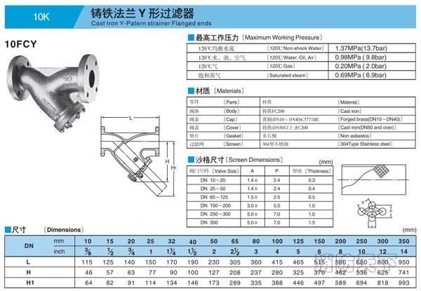日本KITZ EN16FCY鑄鐵法蘭過濾器結構特性: