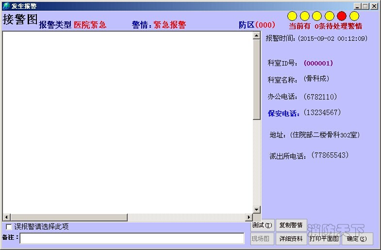 圖四:報警警情界面(接警圖處可插入醫院的平面圖)