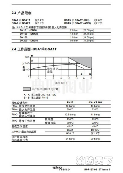 英國斯派莎克波紋管截止閥,BSA2T波紋管蒸汽截止閥的BSA系列波紋管密封截止閥采用獨(dú)特的波紋管密封設(shè)計,從而完全消除了閥桿填料密封泄漏的問題,滿足最嚴(yán)格的泄漏等級要求。斯派莎克SpiraxSarco截止閥BSA型截止閥的零泄漏特性改善了設(shè)備的安全性,節(jié)約大量能源,減少了維修費(fèi)用,并為工業(yè)應(yīng)用提供了清潔安全的工作環(huán)境。斯派莎克SpiraxSarco截止閥BSA型波紋管密封截止閥的口徑從DN15-DN250,可提供各種不同的材質(zhì),從鑄鐵材質(zhì)的BSA1,球墨鑄鐵的BSA2和鑄鋼材質(zhì)的BSA3型截止閥連接標(biāo)準(zhǔn)有法蘭,螺紋和承插焊接等,壓力等級可達(dá)PN40,ANSI 300和CLASS 800。最高工作溫度可425C°,英國斯派莎克SpiraxSarco截止閥可用于高溫系統(tǒng).從而用一種閥即可滿足各種不同的工業(yè)應(yīng)用要求,并確保長的使用壽命,免維修及堅固結(jié)實。