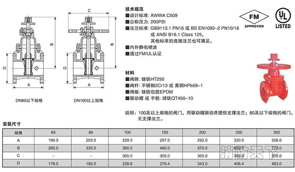 FM/UL認證消防軟密封暗桿閘閥適用于生活用水系統/給排水系統/污水處理系統/化工流體輸送系統等,在建筑消防系統、城市環保、石化、醫藥、食品、冶金、紡織、電力等行業的流體管線上作為截斷裝置使用。