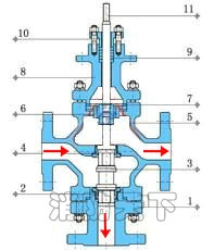 電動三調節閥閥體為三通結構,即一進兩出(分流型),兩進一出(合流型),其中三通合流調節閥用于將兩種流體混合成第三種流體,或兩種不同溫度的同種流體,混合成同一溫度流體。而三通分流閥則是將一種流體分成兩路流體。