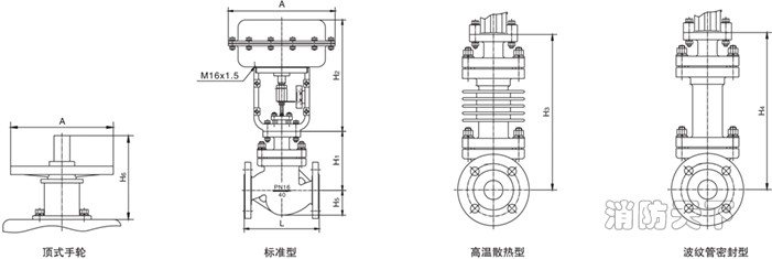 標(biāo)準(zhǔn)型(-17~+250℃)、高溫型(+250~+450℃)、低溫型(-40~-196℃)、波紋管密封型(-40~+350℃) |