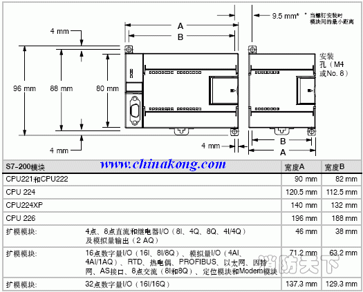 S7-200的CPU和擴展模塊都有安裝孔,可以很方便地安裝在背板上。