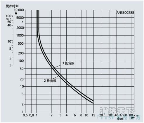 下圖為 3RU61/3RU51 熱過(guò)載繼電器的反時(shí)限脫扣特性曲線,對(duì)應(yīng)于冷態(tài)條件。在工作溫度下,脫扣時(shí)間將減少 25 % 左右。