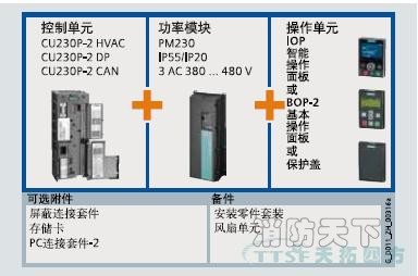 SINAMICS G120P 是一款模塊式變頻器系統(tǒng),其包含以下組件: