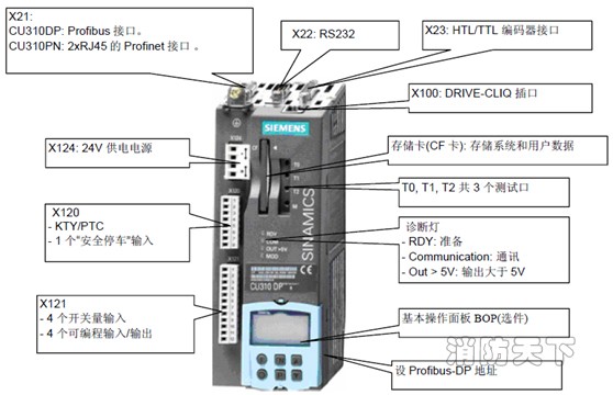 ?? CU310-2 DP 通過(guò)X100 的Drive-CLiQ 接口與功率模塊相連接。