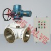 該閥的兩條通道為X形布置,四個通道口徑均布于球體赤道圓周截面上,當球體沿順時針旋轉90時,能使相對的兩個通道實現兩 兩互通。在電站系統中稱為雙向供水轉閥(在石化系統中也稱空氣換向切換閥),適用于液體、氣體、粉塵、漿料及含固體顆粒介質的循環系 統,如:電站機組冷卻器正反向循環供水系統。