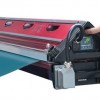 1、 在下鋼板上面鋪一層鐵氟龍耐熱布,然后將已經打齒的皮帶接頭(已經用風槍粘好)平鋪于熱壓機上,接頭處放在模板的中線上。以便接線兩邊受熱均勻。需要駁接的皮帶平鋪好后,在兩邊分別加一小塊同樣厚度的小皮帶廢料以免融化后的PVC原料外溢,導致接好之后的皮帶邊緣變薄。如圖: