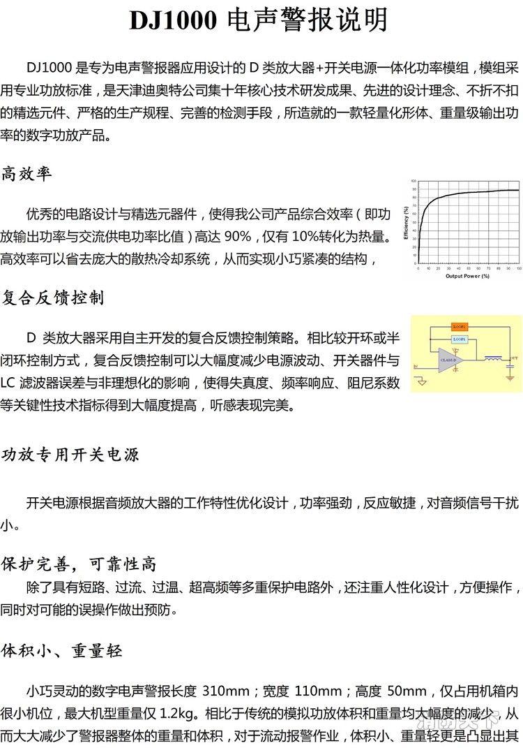 電聲警報器專用D類數(shù)字功放DJ1000W防空防災驅散車船通信