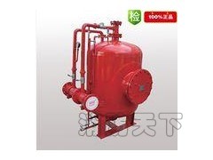 消防泡沫罐主要由帶膠囊的泡沫液壓力儲罐與利用文丘里原理制成的PHYM型壓力式比例混合器組成,當系統管網中的水流經比例混合器減壓孔板時,在孔板的前后會形成壓差。壓高處的一部分水(3%或6%)通過泡沫罐的進水管進入罐內,擠壓膠囊,將膠囊中的泡沫液通過泡沫罐的出液管擠壓至比例混合器低壓處與水混合形成泡沫混合液,形成的泡沫混合液輸出到泡沫產生設備(中、低、高倍數泡沫產生器,泡沫槍,泡沫炮等)與空氣混合產生泡沫滅火。該裝置廣泛用于油庫、化工廠、機庫、油田、燃油鍋爐、地下車庫等場所。