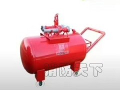 本裝置采用推車(chē)形式,在火災(zāi)發(fā)生初期時(shí),機(jī)動(dòng)、靈活地推動(dòng)該裝置到滅火現(xiàn)場(chǎng)進(jìn)行滅火。本裝置可獨(dú)立作為消防防衛(wèi)器材,也可配合大型固定式泡沫滅火系統(tǒng)起輔助補(bǔ)救作用。該移動(dòng)式泡沫滅火裝置可由消防管網(wǎng)或城市供水管網(wǎng)、消防車(chē)、手抬消防泵提供壓力水源,經(jīng)負(fù)壓比例混合器按一定的比例(3%或6%)與泡沫貯罐內(nèi)的泡沫液形成泡沫混合液,再通過(guò)空氣泡沫產(chǎn)生器形成泡沫噴出滅火。
