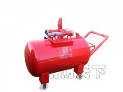 本裝置采用推車形式,在火災發生初期時,機動、靈活地推動該裝置到滅火現場進行滅火。本裝置可獨立作為消防防衛器材,也可配合大型固定式泡沫滅火系統起輔助補救作用。該移動式泡沫滅火裝置可由消防管網或城市供水管網、消防車、手抬消防泵提供壓力水源,經負壓比例混合器按一定的比例(3%或6%)與泡沫貯罐內的泡沫液形成泡沫混合液,再通過空氣泡沫產生器形成泡沫噴出滅火。